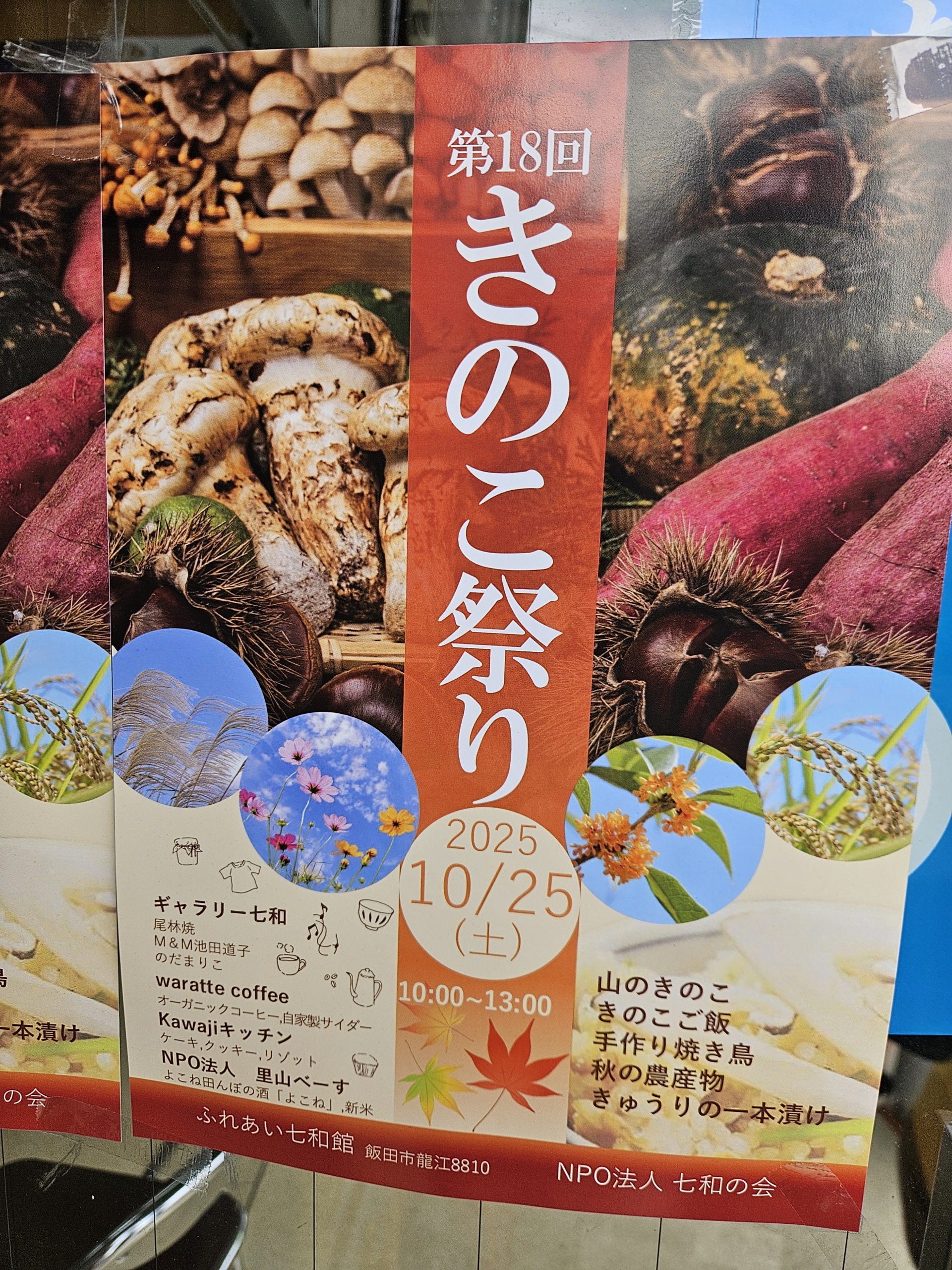 2025年10月25日飯田市龍江の「ふれあい七和館」で行われた「第18回きのこ祭り」に出店!